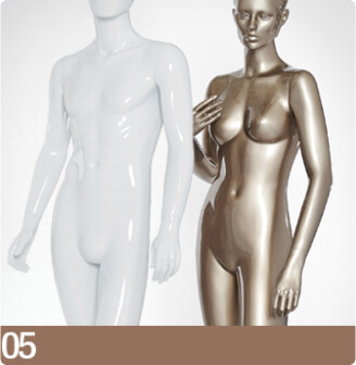 Os dedos dos pés dos manequins são separados para uso de chinelo ou sandália